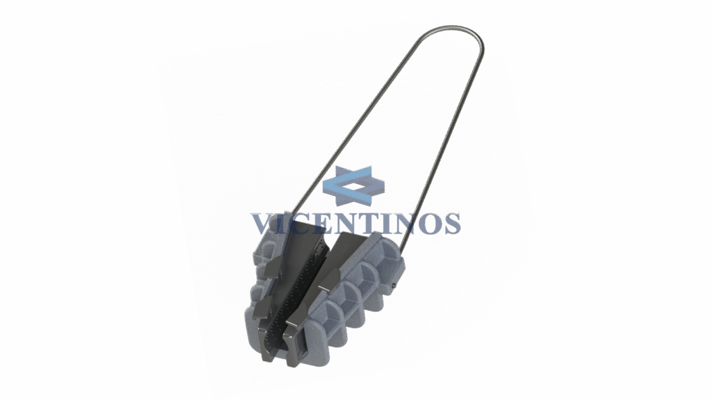 Utilizado em redes aéreas de distribuição de energia, na ancoragem dos cabos em